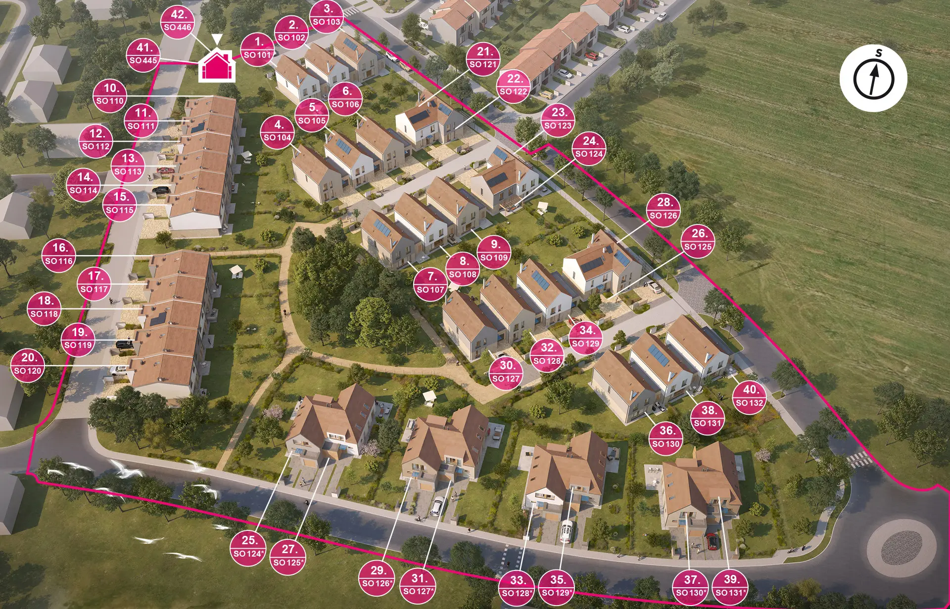 6. etapa zahrnuje celkem 40 rodinných domů, z toho 32 v mimořádně úsporné energetické třídě A s vytápěním tepelným čerpadlem, centrální rekuperací, podlahovým topením a přípravou na fotovoltaiku a 8 domů v úsporné energetické třídě B s centrální rekuperací a vytápěním plynovým kotlem. Všechny domy bez rozdílu jsou osazené okenními výplněmi s trojskly.