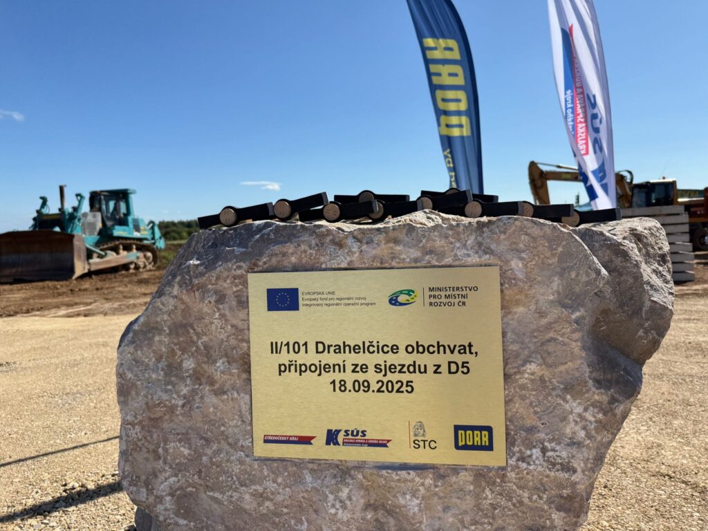 Poklepáním na základní kámen proběhlo 18. září 2025 slavnostní zahájení stavby obchvatu Drahelčic. Nový obchvat odvede tranzitní dopravu mimo intravilán obce a počítá i s připojením nového objektu Státní tiskárny cenin, který přinese nová pracovní místa i rozvoj místní infrastruktury. Nová komunikace bude dlouhá zhruba 1,1 kilometru a pokud půjde vše podle plánu, bude stavba dokončena do 12 měsíců, tedy na podzim příštího roku.